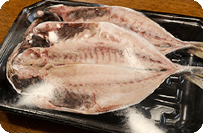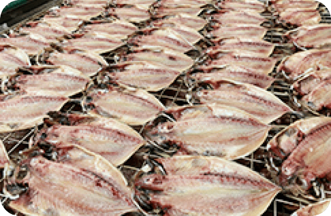 あじ開き / ほっけ開き(縞ほっけ・真ほっけ) / さば関係(鯖フィーレ、鯖開き、鯖文化干し他) / 金目鯛開き / かます開き / のどぐろ開き